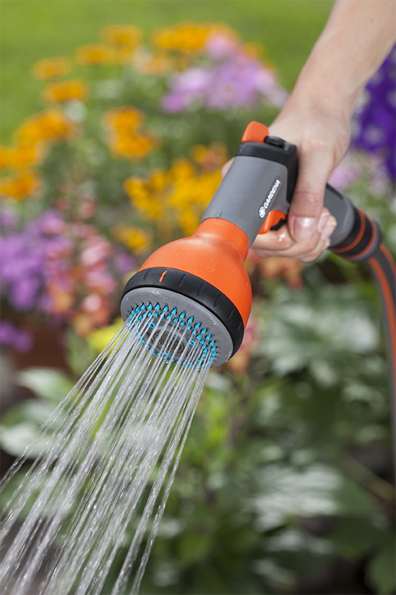 繊細な植物への水やりに。傷つきやすい繊細な植物への散水に向いている散水器。ハーブ庭園や夏花、植物栽培など、さまざまな用途で選んで使える水流は、植物に優しい「ソフトスプレー」もしくは「細かいスプレーミスト」2種類のモード。